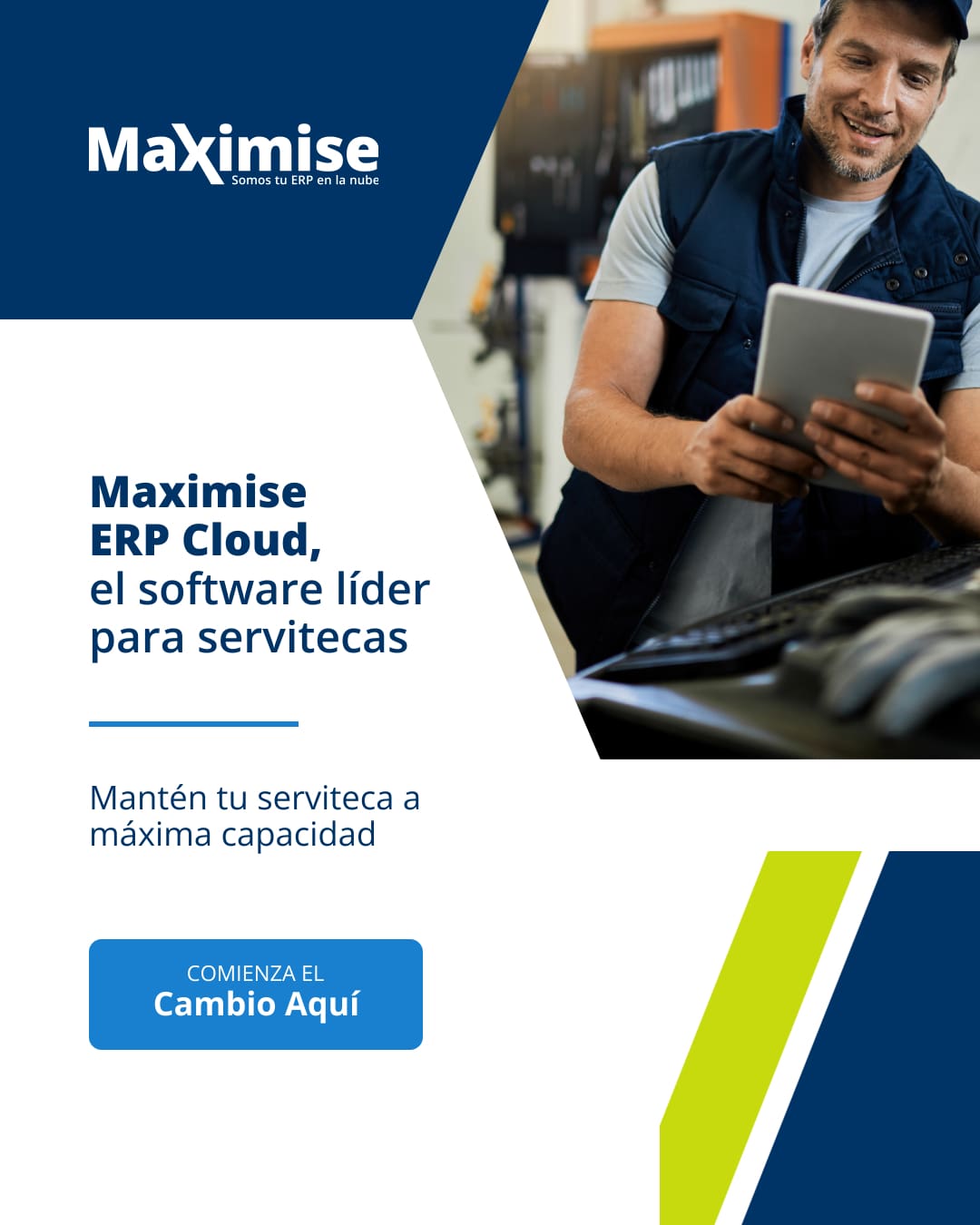 Transforma tu Serviteca con Maximise ERP Cloud. Gestión avanzada para control de inventarios, órdenes de trabajo, POS, y una facturación precisa 100% en la nube para un control total.